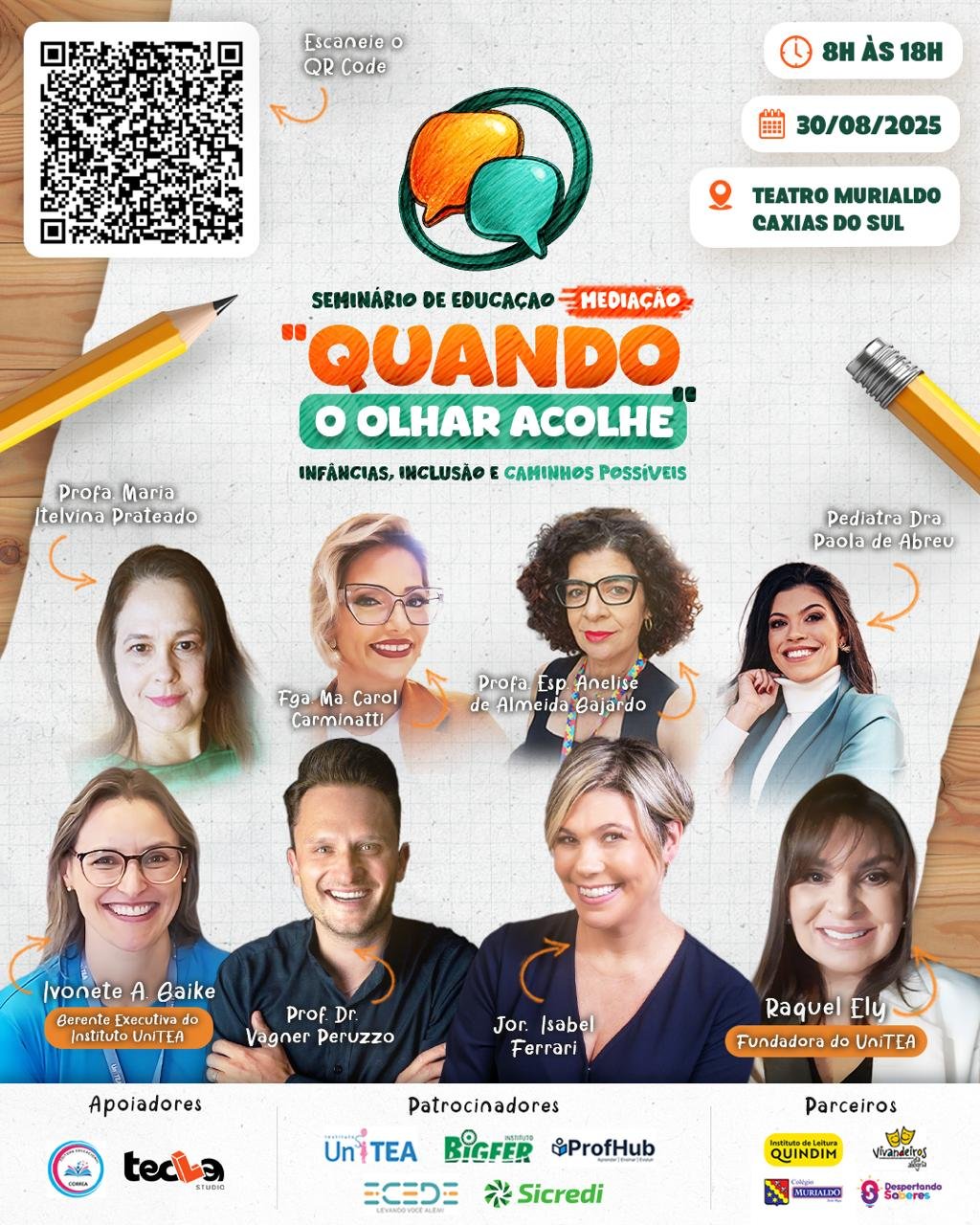 Quando? 30/08/2025 Onde? Teatro Muriáldo – Caxias do Sul Em qual horário? 14h15 às 15h Qual a temática? “O autista adulto e o mer...